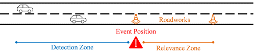Accidents related to roadworks scenarios are common and a big concern for every infrastructure operator. Beside the risk for road users, they threaten both personnel and equipment at the roadworks site. Around 10-15% of roadworks trailers get damaged or destroyed every year on ASFINAG’s motorway network. To send the warning to vehicles, C-ITS messages are used. They contain an event type (e.g. roadworks ahead) and relevant GNSS information. The event position is the relevant spot where the defined event starts or occurs. Considering the RWW, this would be for example the first traffic cone placed to gradually close a lane. If the vehicle, which receives the message, displays a distance together with the warning (e.g. Roadworks in 100m), the distance from the vehicle to the event position is used. Therefore, highly accurate GNSS data for the event position is needed. A detection zone helps the vehicle to determine if the warning message is relevant by comparing the trajectory provided in the message against its own GNSS-based vehicle trajectory. The relevance zone shows the geographical extent of the roadworks and ends when there are no more obstacles on the road. To collect the GNSS information, the project BBO (roadworks equipment localization) was put into practise.